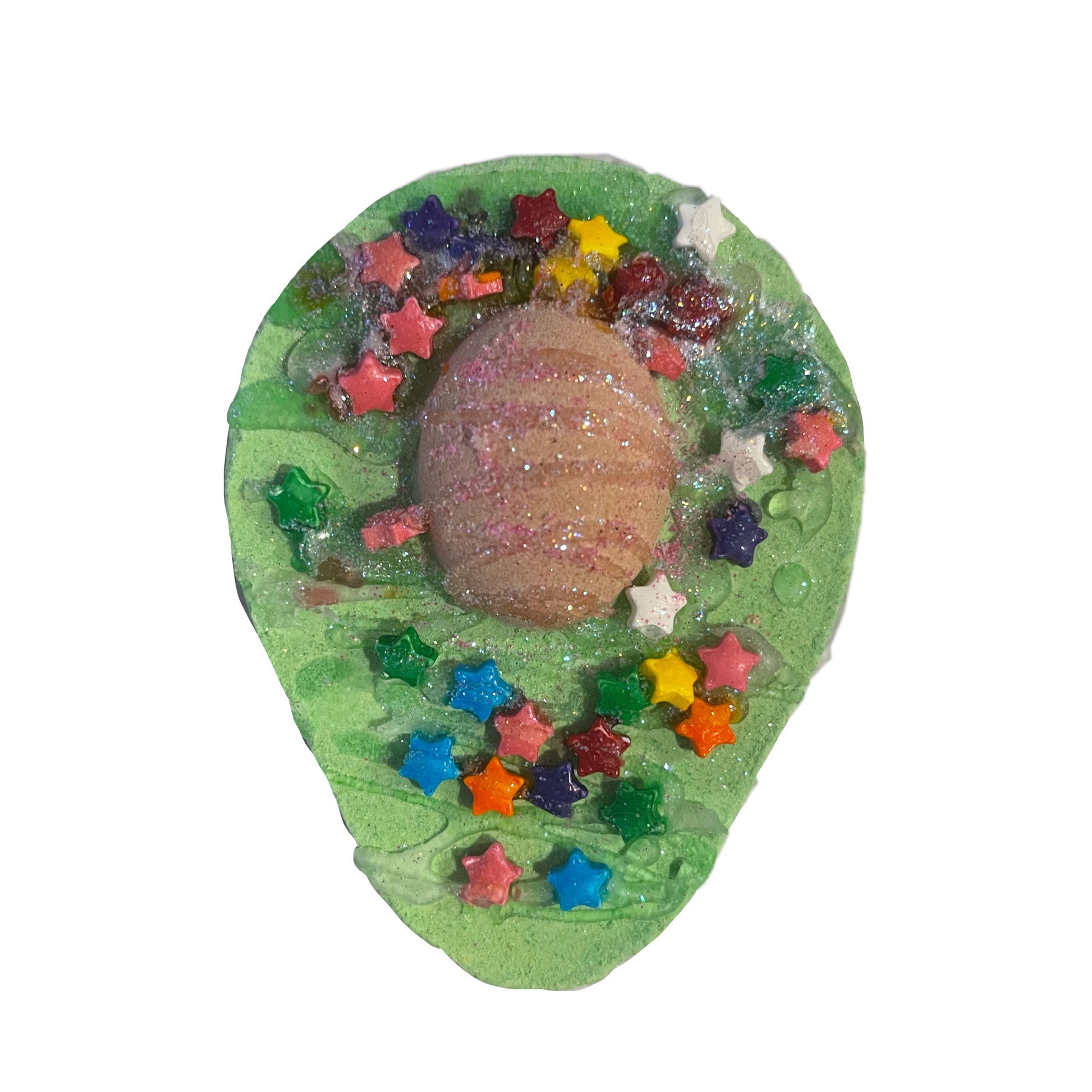 Our AMAZING Guacamole bathbomb fizz release a fresh calm scent of avacado and cucumber. The fizz is amazing. you can have either glitter or sprinkles.